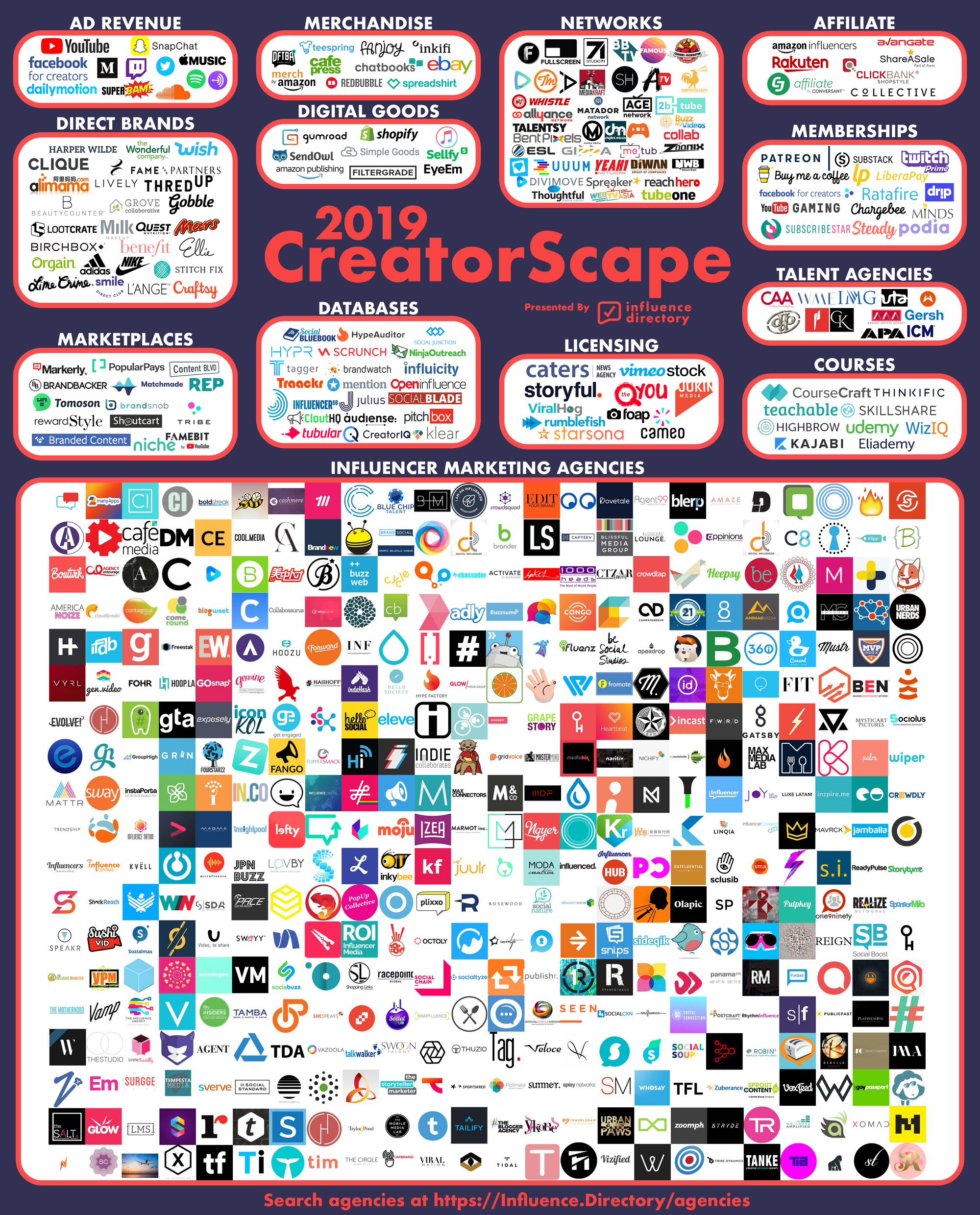 The 2019 edition of CreatorScape lists 639 businesses that run the Creator Economy.